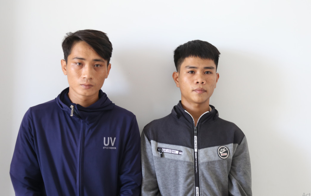 Trần Văn Anh và Phạm Thanh Bảo tại cơ quan điều tra Công an tỉnh Ninh Thuận.