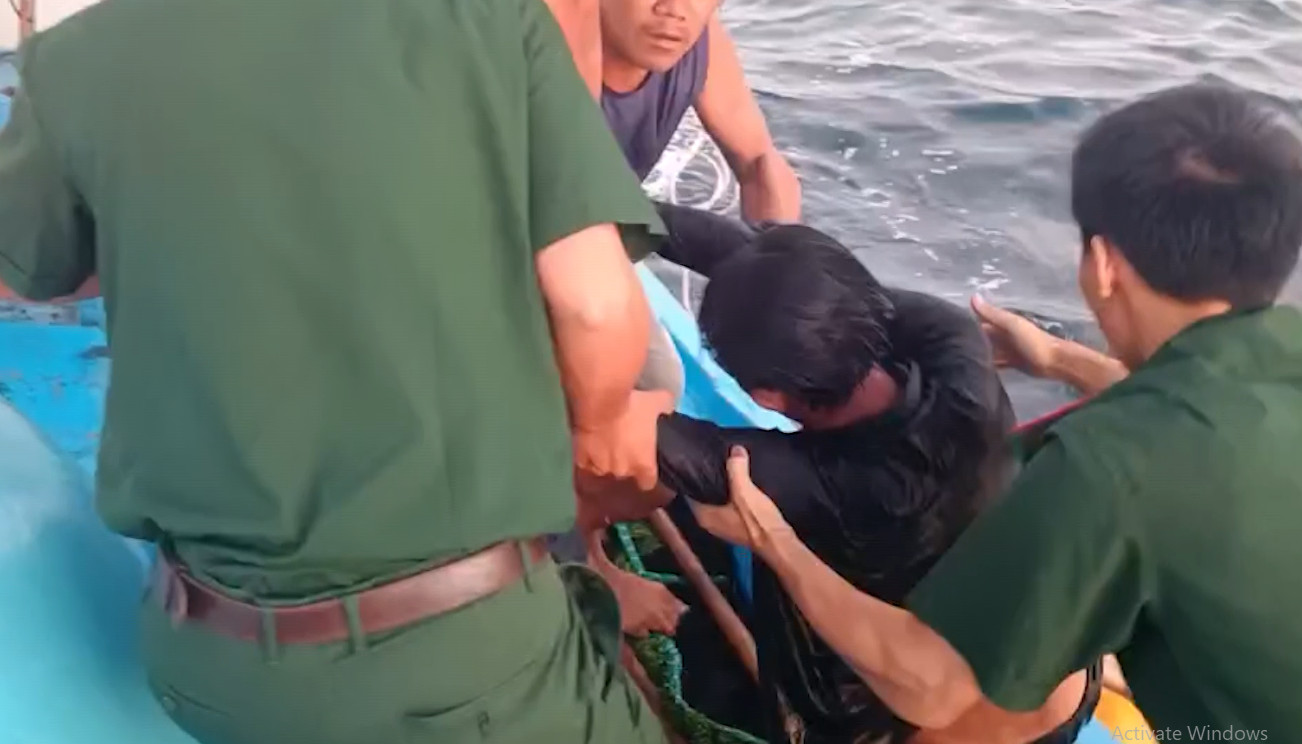 Bộ đội Biên phòng Phước Dinh (Ninh Thuận) cứu vớt kịp thời ngư dân ở tỉnh ngoài bị rơi xuống biển.