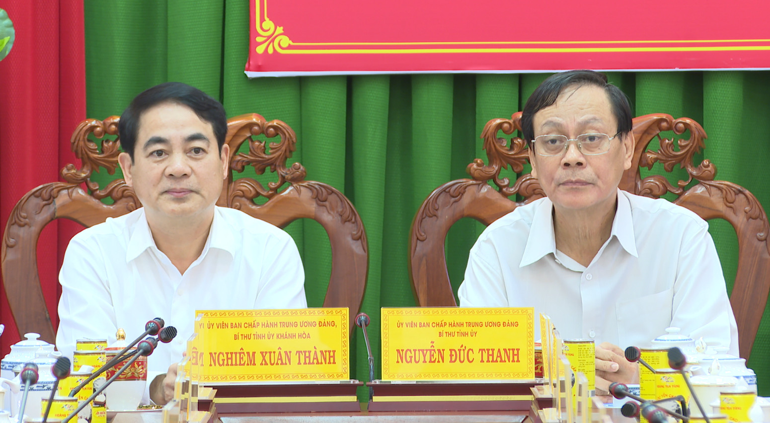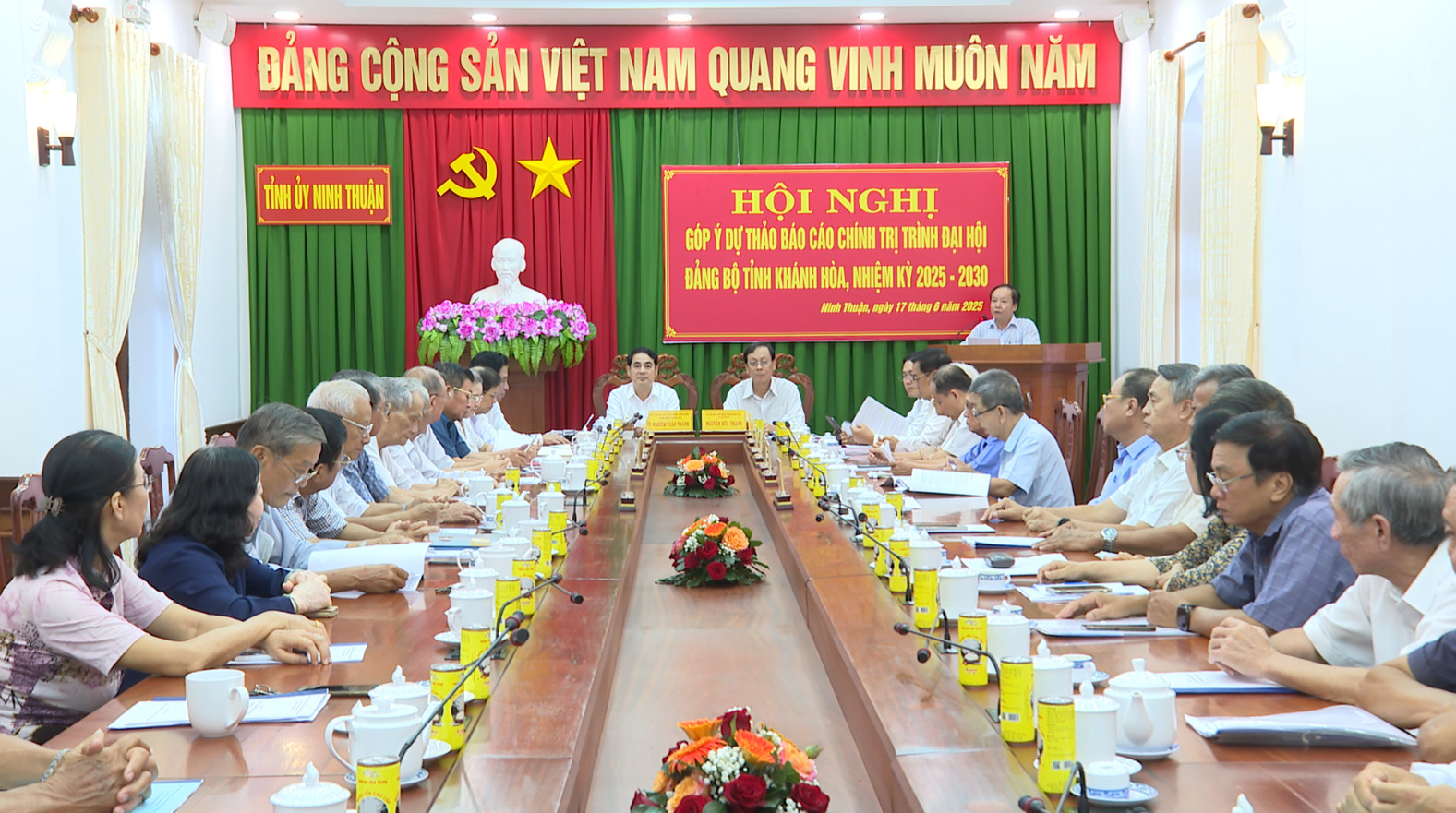 Chiều ngày 17/6/2025, Thường trực Tỉnh ủy Ninh Thuận và Thường trực Tỉnh ủy Khánh Hòa tổ chức Hội nghị lấy ý kiến các đồng chí nguyên lãnh đạo tỉnh Ninh Thuận góp ý dự thảo Báo cáo chính trị trình Đại hội Đảng bộ tỉnh Khánh Hòa nhiệm kỳ 2025-2030. Đồng chí Nguyễn Đức Thanh, Ủy viên Trung ương Đảng, Bí thư Tỉnh ủy Ninh Thuận và đồng chí Nghiêm Xuân Thành, Ủy viên Trung ương Đảng, Bí thư Tỉnh ủy Khánh Hòa chủ trì hội nghị. Tham dự hội nghị có đồng chí Nguyễn Khắc Toàn, Phó Bí thư Thường trực Tỉnh ủy, Chủ tịch HĐND tỉnh Khánh Hòa; đồng chí Phạm Văn Hậu, Phó Bí thư Thường trực Tỉnh ủy, Chủ tịch HĐND tỉnh Ninh Thuận; đồng chí Nguyễn Tấn Tuân, Phó Bí thư Tỉnh ủy, Chủ tịch UBND tỉnh Khánh Hòa; đồng chí Lê Hữu Thọ, Ủy viên Thường vụ Tỉnh ủy, Trưởng Ban Tuyên giáo và Dân vận Tỉnh ủy Khánh Hòa, Tổ trưởng Tổ Văn kiện Đại hội Đảng bộ tỉnh Khánh Hòa.