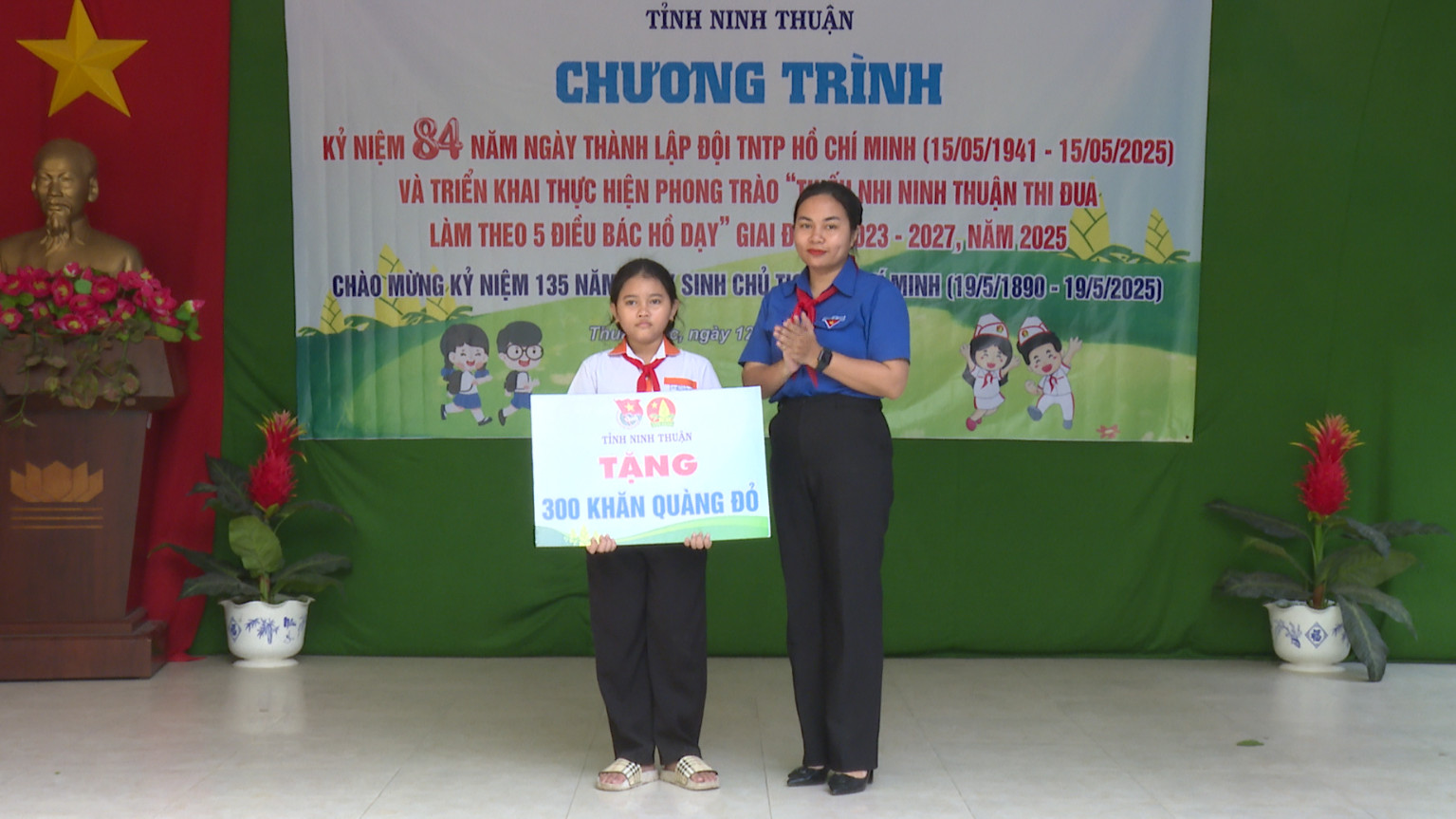 Tại Chương trình, các đại biểu, thầy cô giáo và các em học sinh đã cùng nhau ôn lại truyền thống 84 năm xây dựng, trưởng thành của Đội Thiếu niên tiền phong Hồ Chí Minh. Cũng trong khuôn khổ Chương trình, lãnh đạo Tỉnh đoàn đã phát động phong trào “Thiếu nhi Ninh Thuận thi đua làm theo 5 điều Bác Hồ dạy” giai đoạn 2023 – 2027 với các nội dung trọng tâm như: Chương trình “Thiếu nhi học tập tốt, rèn luyện chăm”, tích cực vận động thiếu nhi tham gia các cuộc thi sáng tạo, ứng dụng khoa học công nghệ và xu hướng giải trí lành mạnh trên không gian mạng; hưởng ứng các phong trào “Nghìn việc tốt”, “Kế hoạch nhỏ”, “Đôi bạn cùng tiến”, “Vì bạn nghèo”, “Thắp sáng ước mơ tuổi trẻ Ninh Thuận”… Đồng thời, tổ chức tuyên truyền về Luật trẻ em, quyền tham gia của trẻ em.