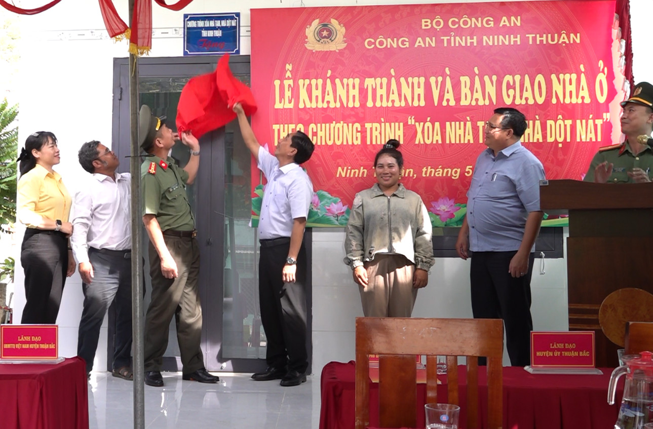 Công an tỉnh Ninh Thuận bàn giao nhà cho gia đình chị Katơr Thị Môn ở xã Phước Kháng, huyện Thuận Bắc.