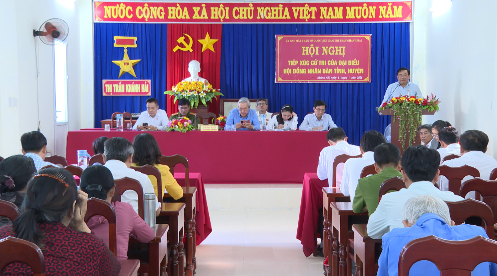 Tại buổi tiếp xúc, cử tri thị trấn Khánh Hải, huyện Ninh Hải, Ninh Thuận kiến nghị: Cần nạo vét kênh 19 Tháng 5 qua địa bàn thị trấn Khánh Hải nhằm giảm tình trạng ngập cục bộ do mưa lũ; chỉnh trang khu vực Đài liệt sĩ huyện Ninh Hải nhằm đảm bảo mỹ quan đô thị; khảo sát lắp đặt đèn tín hiệu giao thông ngã 4 đường Yên Ninh giao với đường Ngô Sĩ Liên; lắp đặt hệ thống đèn chiếu sáng và sửa chữa một số điểm xuống cấp trên tỉnh lộ 704 để đảm bảo an toàn giao thông.