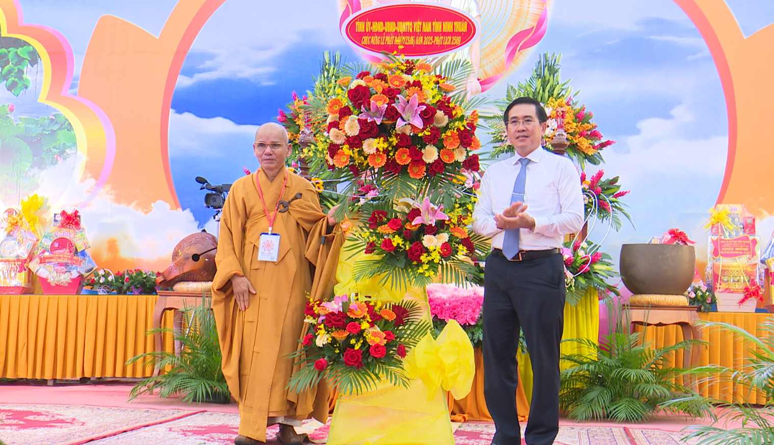 Tại buổi lễ, thay mặt Tỉnh ủy, HĐND tỉnh, UBND tỉnh, UBMTTQVN tỉnh, đồng chí Phạm Văn Hậu, Phó Bí thư Thường trực Tỉnh ủy, Chủ tịch HĐND tỉnh Ninh Thuận đã tặng hoa chúc mừng đại lễ Phật đản Vesak 2025.