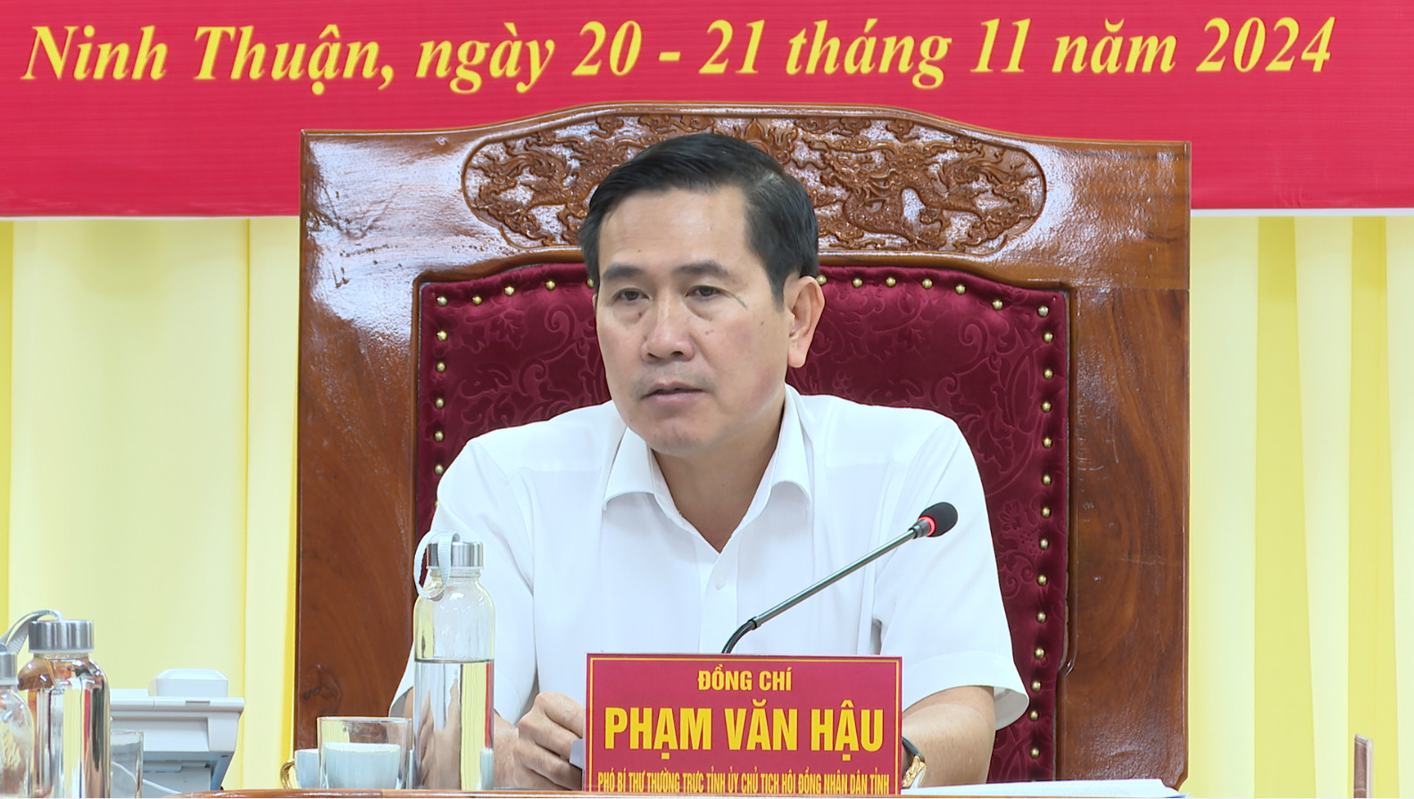 Chiều ngày 20/11/2024, Đảng ủy Bộ đội Biên phòng tỉnh Ninh Thuận tổ chức Hội nghị kiểm điểm, đánh giá, xếp loại tập thể, cá nhân thuộc diện Ban Thường vụ Tỉnh ủy Ninh Thuận quản lý năm 2024. Đến dự có đồng chí Phạm Văn Hậu, Phó Bí thư Thường trực Tỉnh uỷ, Chủ tịch Hội đồng nhân dân (HĐND) tỉnh Ninh Thuận và lãnh đạo các Ban Đảng của Tỉnh ủy Ninh Thuận.