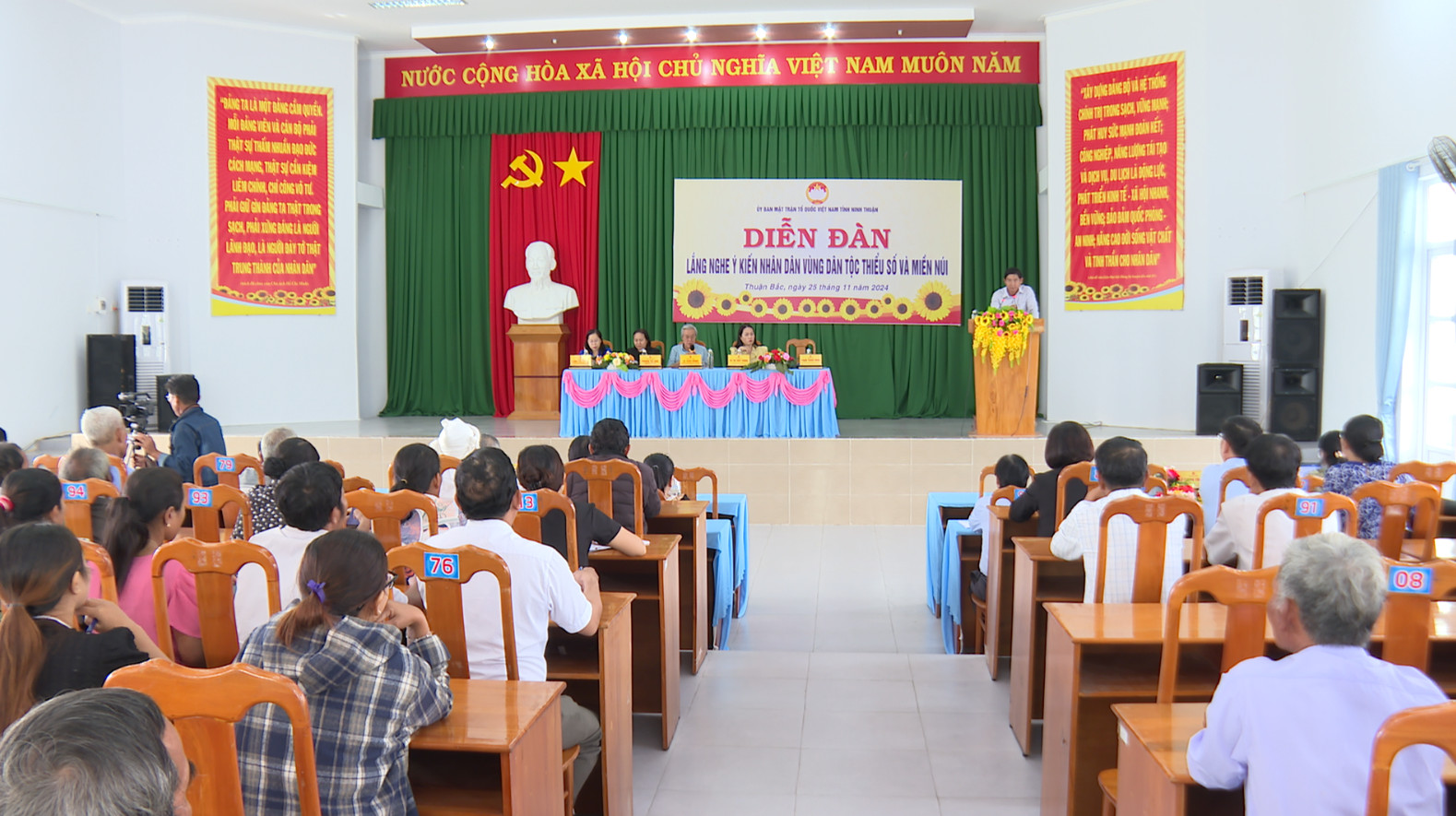Phát biểu tại Diễn đàn, đồng chí Lê Văn Bình, Ủy viên Thường vụ Tỉnh ủy, Chủ tịch UBMTTQVN tỉnh Ninh Thuận ghi nhận và đánh giá cao kết quả triển khai Chương trình mục tiêu quốc gia phát triển kinh tế – xã hội vùng đồng bào dân tộc thiểu số và miền núi năm 2024 trên địa bàn huyện Thuận Bắc. Điều đó không chỉ được thể hiện rõ qua từng con số, trên từng lĩnh vực cụ thể mà còn được thông qua việc người dân được thụ hưởng một cách thực chất, đúng người, đúng đối tượng.