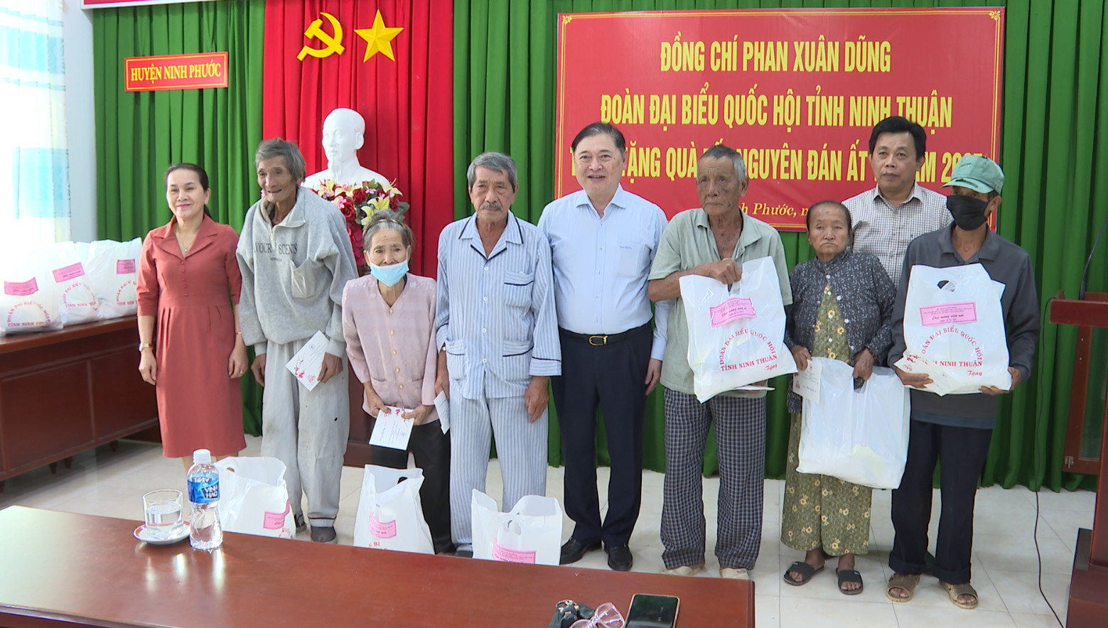 Đồng chí Phan Xuân Dũng, Chủ tịch Liên hiệp các Hội Khoa học và Kỹ thuật Việt Nam, đại biểu Quốc hội tỉnh Ninh Thuận thăm, tặng quà Tết cho các gia đình chính sách, hộ nghèo, cận nghèo ở huyện Ninh Phước.