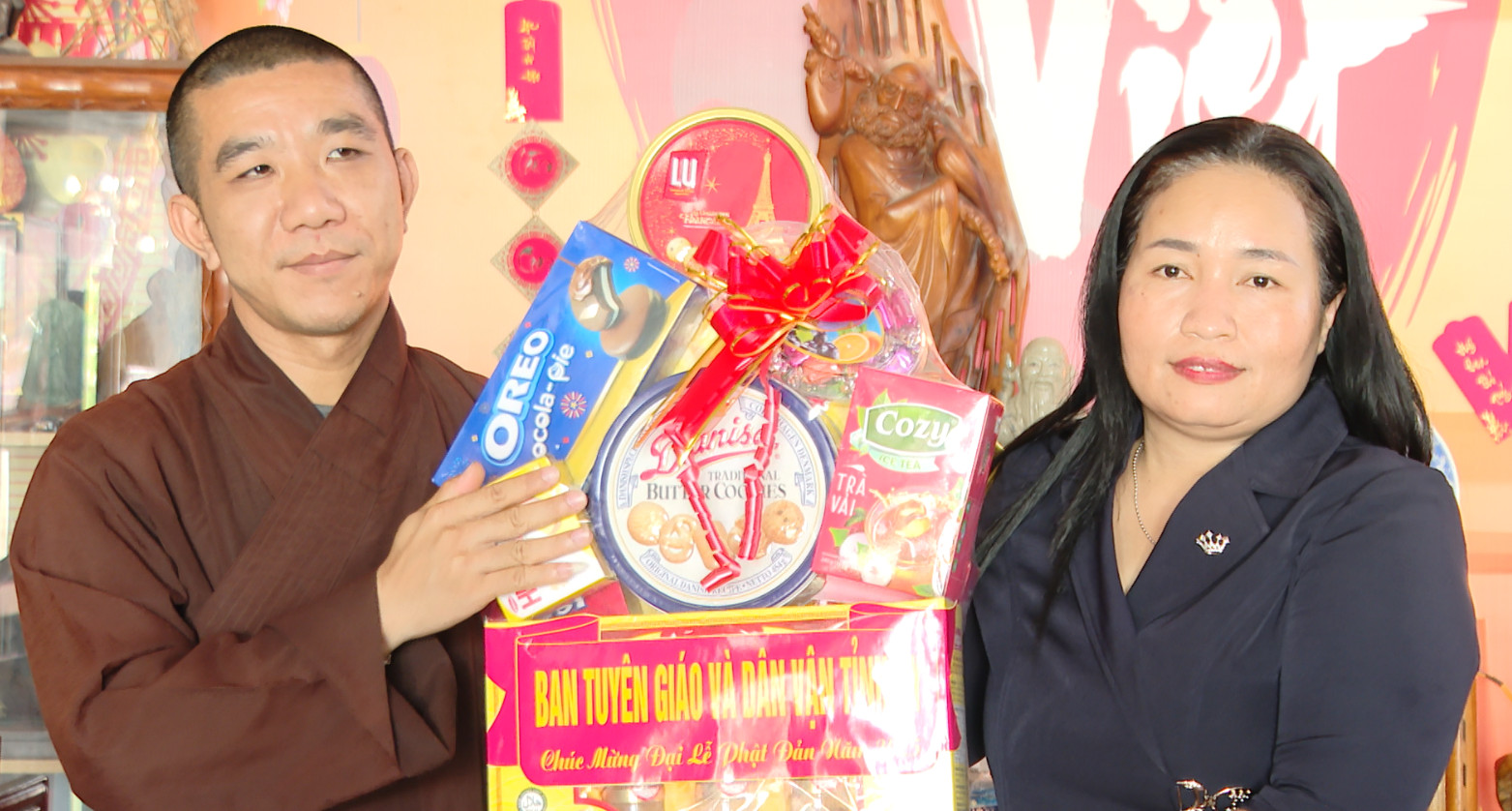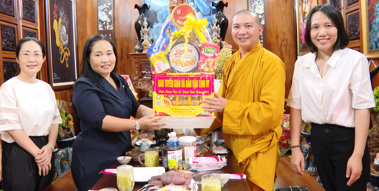 Đồng chí Chamaléa Thị Thủy, Ủy viên Thường vụ Tỉnh ủy, Trưởng Ban Tuyên giáo và Dân vận Tỉnh ủy Ninh Thuận thăm, tặng quà nhân dịp Lễ Phật đản 2025
