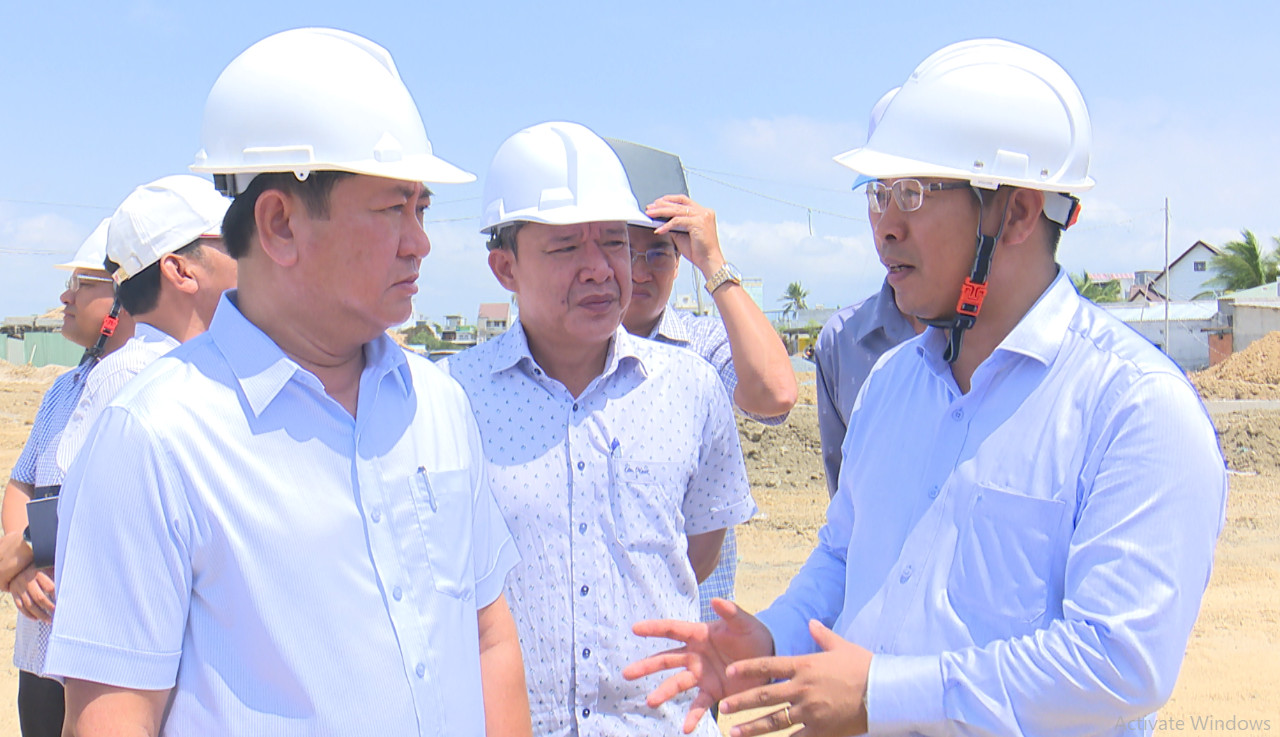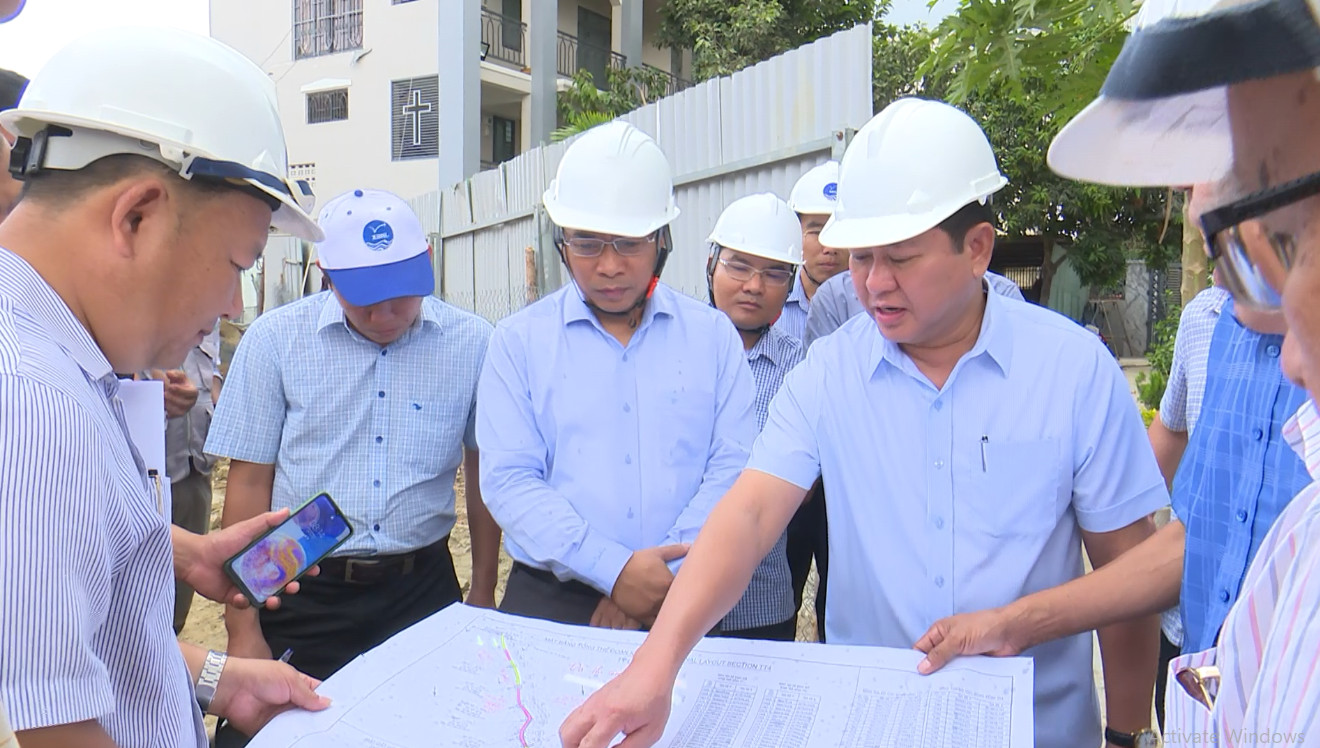 Đồng chí Trần Quốc Nam, Phó Bí thư Tỉnh ủy, Chủ tịch UBND tỉnh Ninh Thuận kiểm tra tiến độ thi công kênh Tấn Tài thuộc Tiểu dự án thành phố Phan Rang – Tháp Chàm.