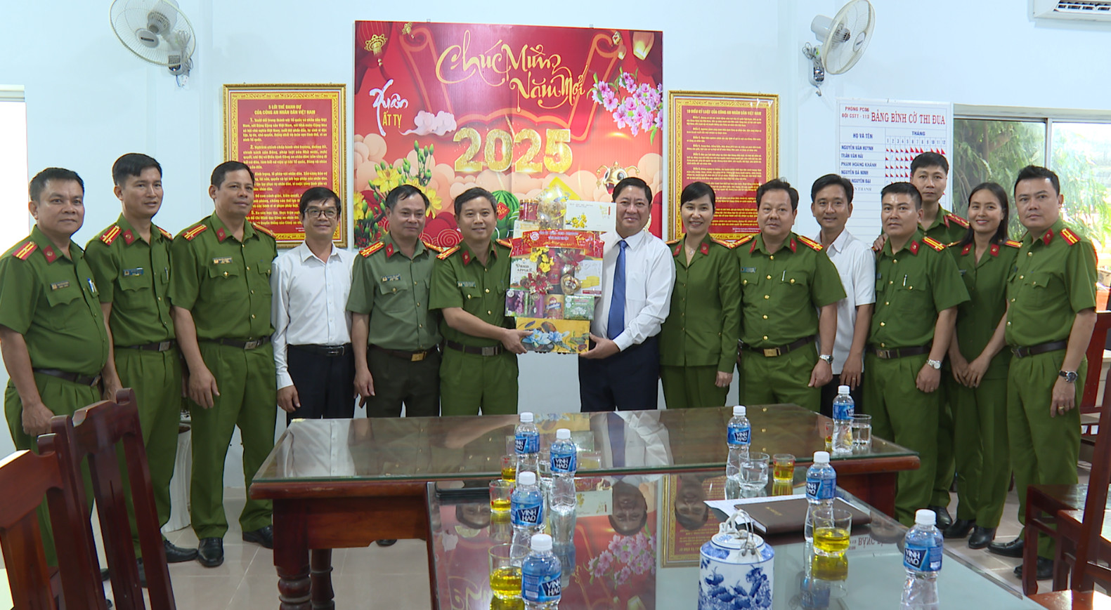 Đồng chí Trần Quốc Nam, Phó Bí thư Tỉnh ủy, Chủ tịch UBND tỉnh Ninh Thuận tặng quà chúc tết cán bộ, chiến sỹ Phòng Cảnh sát kinh tế, Công an tỉnh Ninh Thuận