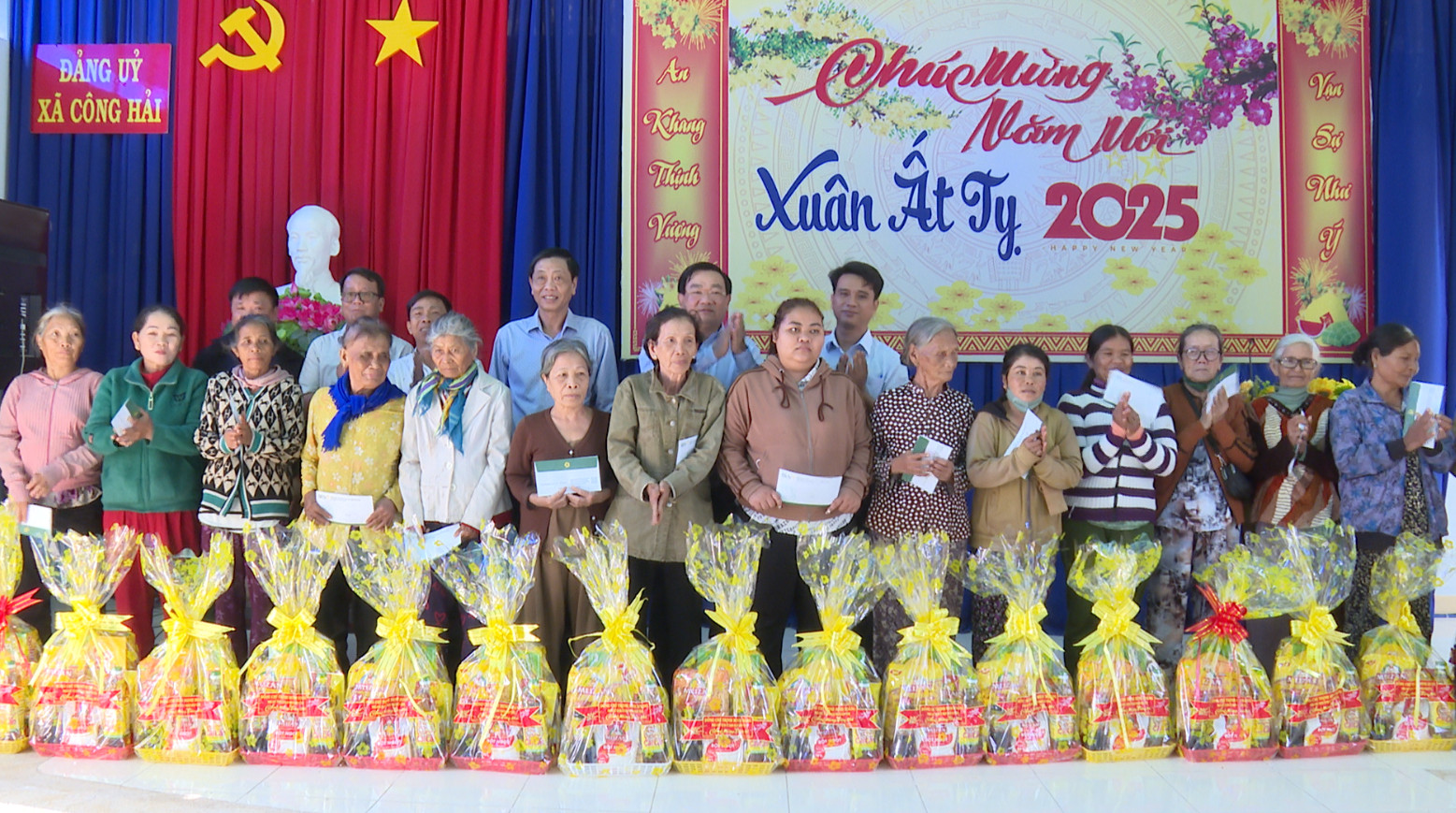 Đồng chí Trịnh Minh Hoàng, Phó Chủ tịch UBND tỉnh Ninh Thuận tặng quà, chúc Tết các gia đình chính sách, hộ nghèo, cận nghèo ở xã Công Hải, huyện Thuận Bắc.