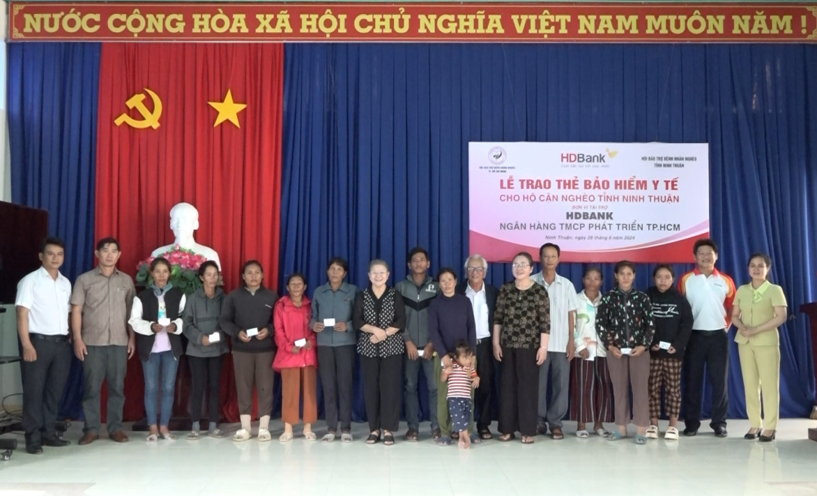 Sáng 28/6/2024, tại xã Công Hải, huyện Thuận Bắc, Hội Bảo trợ bệnh nhân nghèo tỉnh Ninh Thuận phối hợp với Ngân hàng cổ phần Thương mại và Phát triển Thành phố Hồ Chí Minh và UBND huyện Thuận Bắc tổ chức trao tặng thẻ Bảo hiểm y tế cho 400 hộ cận nghèo của 03 xã Công Hải, Lợi Hải và Bắc Phong. Trong đó, ngân sách Trung ương hỗ trợ 70% mệnh giá thẻ Bảo hiểm y tế, ngân sách địa phương hỗ trợ 20% mệnh giá thẻ Bảo hiểm y tế và Ngân hàng cổ phần Thương mại và Phát triển Thành phố Hồ Chí Minh hỗ trợ 10% kinh phí còn lại. Thời hạn sử dụng của thẻ Bảo hiểm y tế là 06 tháng (bắt đầu từ ngày 01/7/2024).