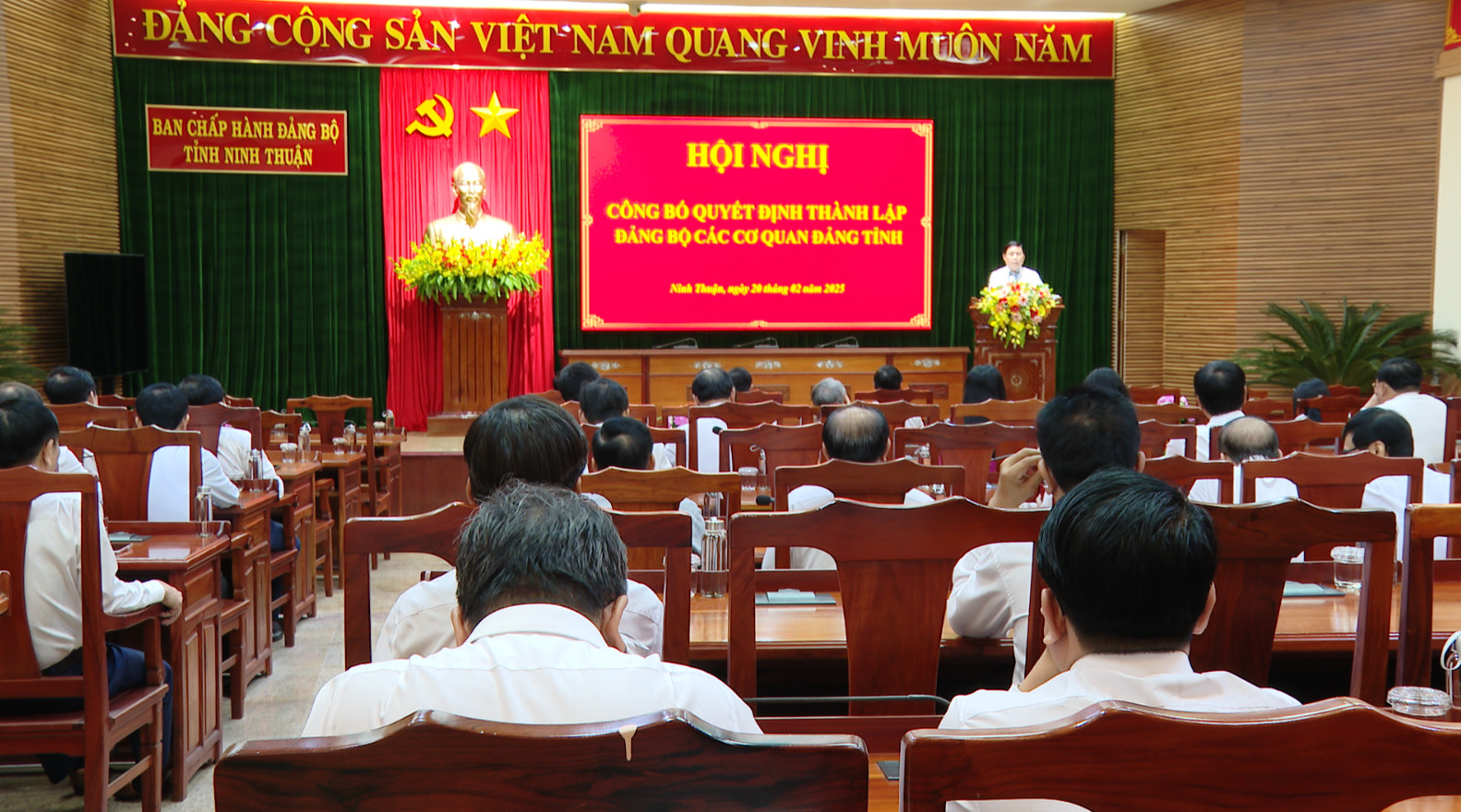Tại hội nghị, đồng chí Lâm Đông, Ủy viên Thường vụ Tỉnh ủy, Trưởng Ban Tổ chức Tỉnh ủy Ninh Thuận đã công bố Quyết định của Ban Thường vụ Tỉnh ủy Ninh Thuận về Kết thúc hoạt động của 11 Đảng đoàn, Ban cán sự đảng trực thuộc Tỉnh ủy Ninh Thuận; chuyển chức năng, nhiệm vụ của các Đảng đoàn, Ban cán sự đảng cho Ban Thường vụ đảng ủy (hoặc cấp ủy chi bộ cơ sở) các tổ chức, cơ quan, đơn vị nơi kết thúc đảng đoàn, ban cán sự đảng, gồm: Đảng đoàn HĐND tỉnh; Đảng đoàn MTTQVN tỉnh; Đảng đoàn LĐLĐ tỉnh; Đảng đoàn Hội Nông dân tỉnh; Đảng đoàn Hội Liên hiệp phụ nữ tỉnh; Đảng đoàn Hội Cựu Chiến binh tỉnh; Đảng đoàn Hội Liên hiệp văn học nghệ thuật tỉnh; Đảng đoàn Liên hiệp các hội Khoa học và Kỹ thuật tỉnh; Ban cán sự đảng UBND tỉnh; Ban cán sự đảng Viện Kiểm sát nhân dân tỉnh; Ban cán sự đảng Tòa án nhân dân tỉnh.