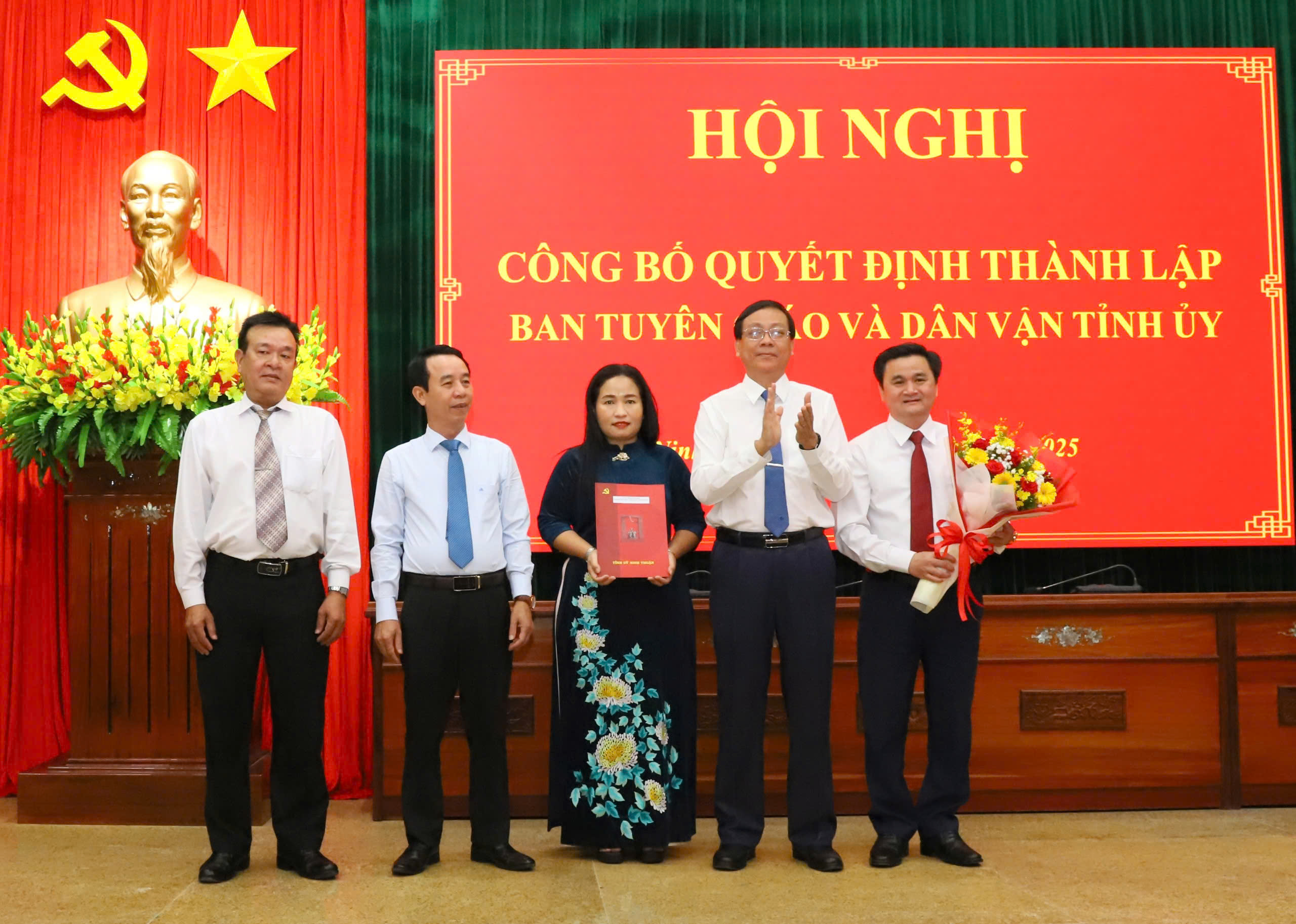 – Công bố Quyết định của Ban Chấp hành Đảng bộ tỉnh về việc hợp nhất ban Tuyên giáo Tỉnh ủy và Ban Dân vận Tỉnh ủy thành Ban Tuyên giáo và Dân vận Tỉnh ủy.