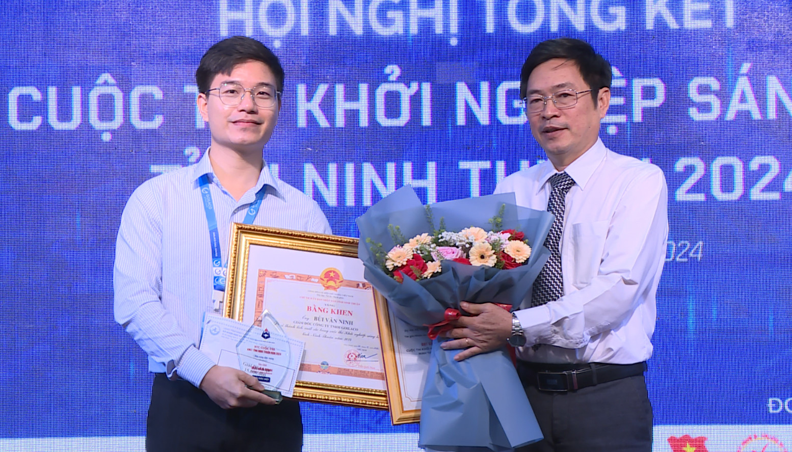 Ban Tổ chức trao Bằng khen của Chủ tịch UBND tỉnh Ninh Thuận cho ông Bùi Văn Ninh, Giám đốc Công ty TNHH Goilaco đã có thành tích xuất sắc trong cuộc thi Khởi nghiệp sáng tạo tỉnh Ninh Thuận năm 2024.