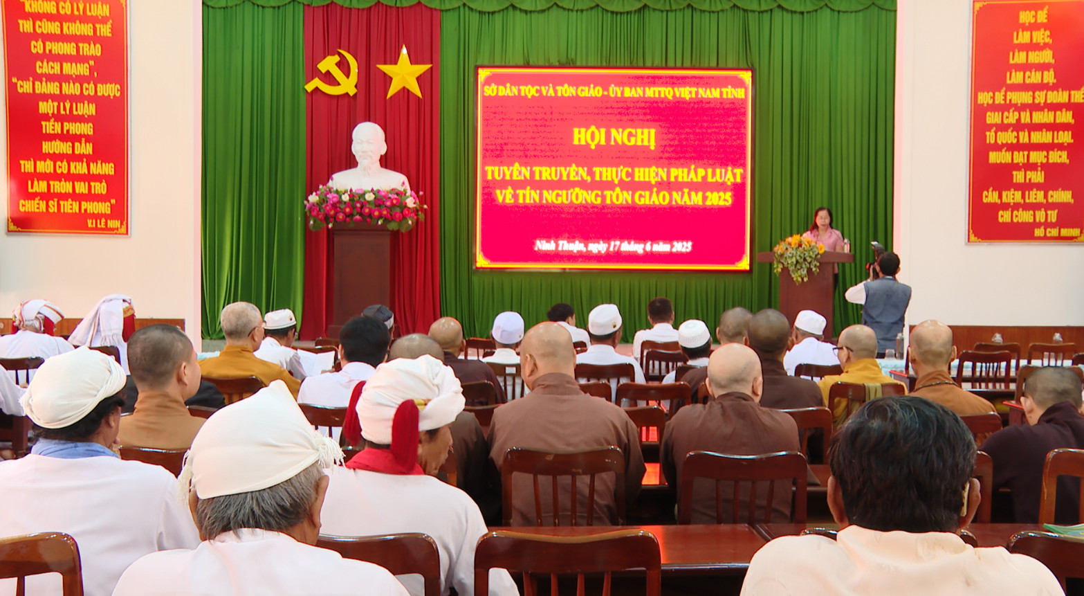 Sáng ngày 17/6/2025, Sở Dân tộc và Tôn giáo tỉnh Ninh Thuận phối hợp với UBMTTQVN tỉnh Ninh Thuận tổ chức Hội nghị tuyên truyền, thực hiện pháp luật tín ngưỡng, tôn giáo năm 2025 cho 120 đại biểu là chức sắc, chức việc chủ chốt của các tổ chức tôn giáo, tổ chức tôn giáo trực thuộc, Ban quản lý các cơ sở tín ngưỡng trên địa bàn tỉnh.