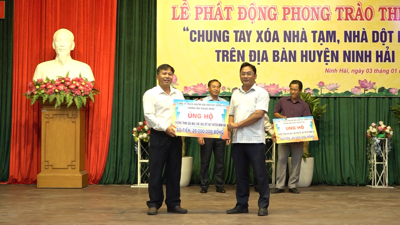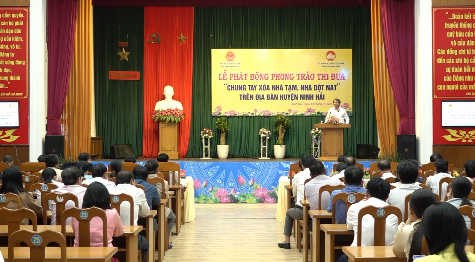 Phát biểu tại buổi lễ, lãnh đạo UBND huyện Ninh Hải kêu gọi cả hệ thống chính trị và Nhân dân tiếp tục phát huy và lan toả truyền thống đoàn kết, “Tương thân, tương ái” của dân tộc Việt Nam, bằng hành động thiết thực, chung tay triển khai thực hiện Chương trình “Xoá nhà tạm, nhà dột nát” với phương châm: “Ai có gì góp nấy, ai có công góp công, ai có của góp của, ai có nhiều góp nhiều, ai có ít góp ít”. Phấn đấu đến cuối tháng 6 năm 2025 hoàn thành mục tiêu xóa nhà tạm, nhà dột nát cho hộ nghèo, hộ cận nghèo trên địa bàn huyện.