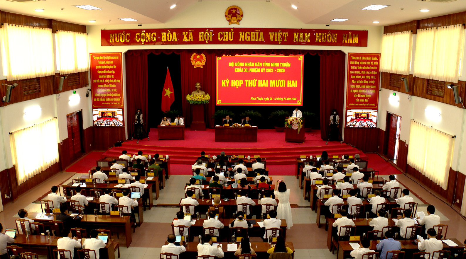 Sáng ngày 09/12/2024, (Hội đồng nhân dân) HĐND tỉnh Ninh Thuận khóa XI, nhiệm kỳ 2021 – 2026 khai mạc Kỳ họp thứ 22, Kỳ họp thường lệ cuối năm 2024. Tham dự có đồng chí Nguyễn Đức Thanh, Ủy viên Trung ương Đảng, Bí thư Tỉnh ủy Ninh Thuận; đồng chí Trần Quốc Nam, Phó Bí thư Tỉnh ủy, Chủ tịch Ủy ban nhân dân (UBND) tỉnh Ninh Thuận; các đồng chí trong Ban Thường vụ Tỉnh ủy Ninh Thuận; các đại biểu HĐND tỉnh Ninh Thuận khóa XI; lãnh đạo các Sở, ngành và các huyện, thành phố. Đồng chí Phạm Văn Hậu, Phó Bí thư Thường trực Tỉnh ủy, Chủ tịch HĐND tỉnh và đồng chí Trần Minh Lực, Ủy viên Thường vụ Tỉnh ủy, Phó Chủ tịch HĐND tỉnh Ninh Thuận chủ tọa kỳ họp.
