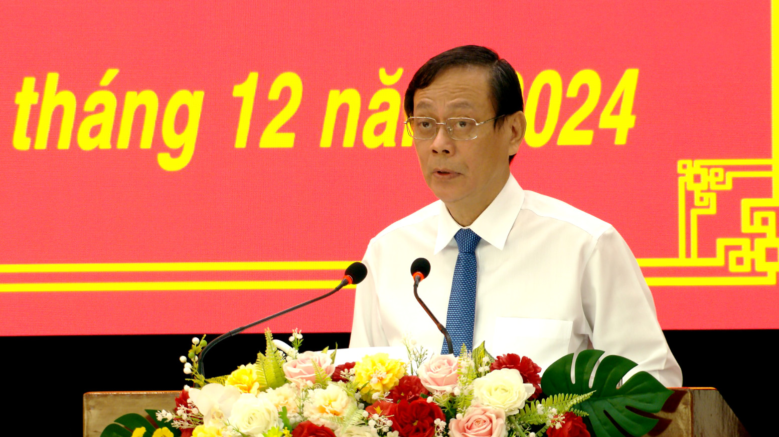 Đồng chí Phạm Văn Hậu, Phó Bí thư Thường trực Tỉnh ủy, Chủ tịch HĐND tỉnh Ninh Thuận phát biểu.