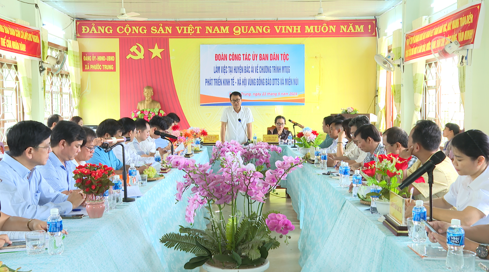 Sáng ngày 23/9/2024, Đoàn Công tác của Ủy ban Dân tộc do đồng chí Hà Việt Quân, Chánh văn phòng điều phối Chương trình mục tiêu quốc gia phát triển kinh tế – xã hội vùng đồng bào dân tộc thiểu số và miền núi làm Trưởng đoàn đã đến kiểm tra Chương trình mục tiêu quốc gia phát triển kinh tế – xã hội vùng đồng bào dân tộc thiểu số và miền núi trên địa bàn huyện Bác Ái, Ninh Thuận.