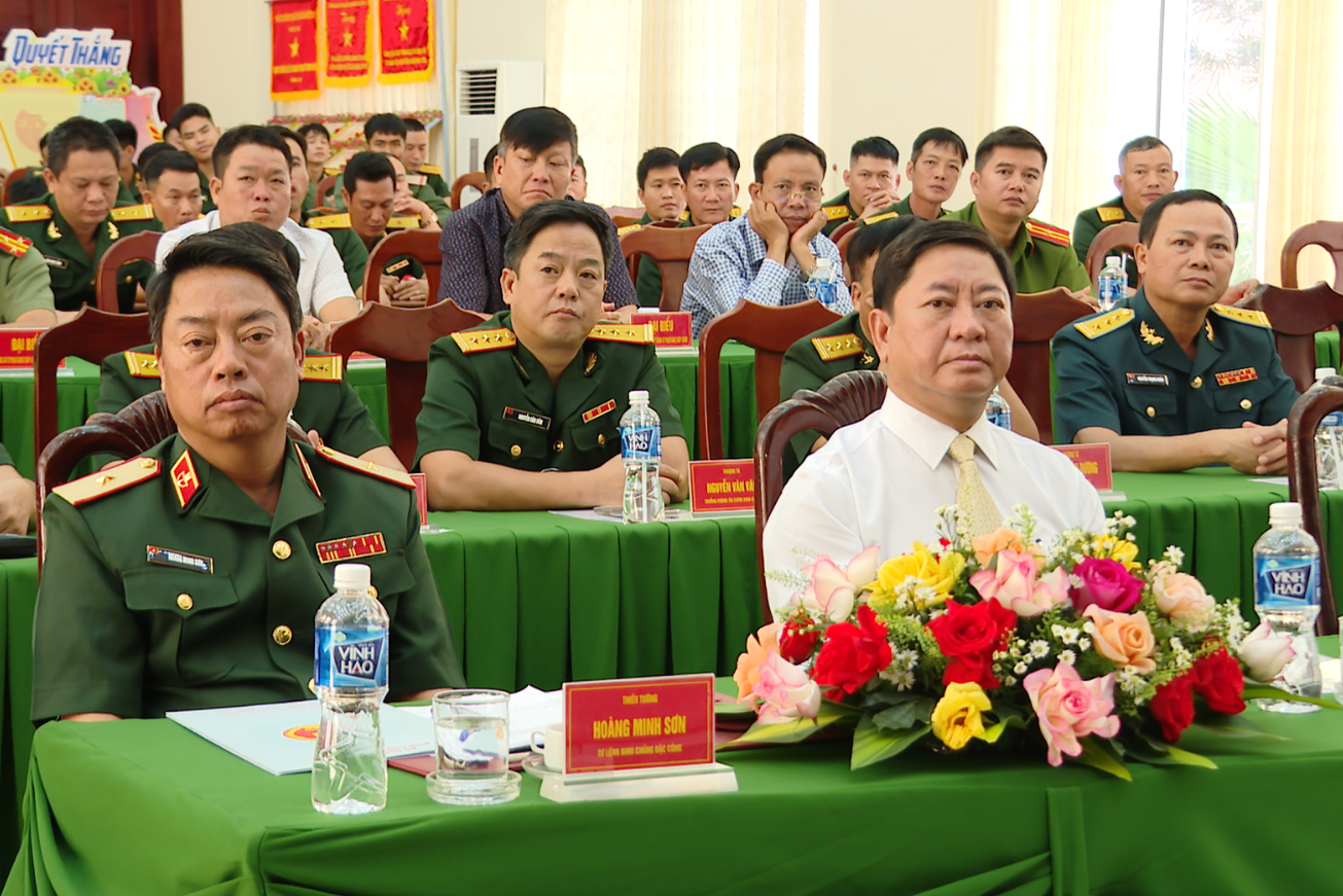 Thiếu tướng Hoàng Minh Sơn, Tư lệnh Binh chủng Đặc công; đồng chí Trần Quốc Nam, Phó Bí thư Tỉnh ủy, Chủ tịch UBND tỉnh Ninh Thuận và các đại biểu tại buổi lễ.