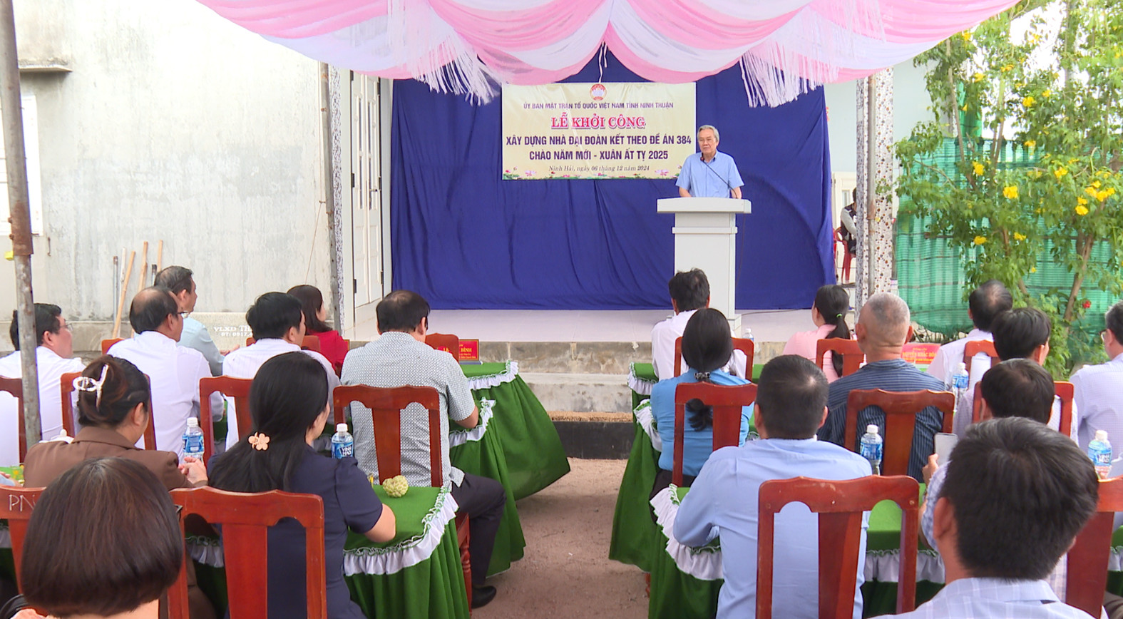 Phát biểu tại Lễ khởi công, đồng chí Lê Văn Bình, Ủy viên Thường vụ Tỉnh ủy, Chủ tịch UBMTTQVN tỉnh Ninh Thuận khẳng định: Công cuộc xóa nhà tạm, nhà dột nát được xem là một trong những nhiệm vụ quan trọng, thể hiện tính nhân văn, truyền thống “Tương thân tương ái”, “Lá lành đùm lá rách” của dân tộc. Thời gian qua, với sự vào cuộc đồng bộ, trách nhiệm, nghĩa tình của cấp ủy, chính quyền và cả hệ thống chính trị, rất nhiều ngôi nhà thuộc đề án 384 của MTTQ được khởi công, xây dựng. Những ngôi nhà được bàn giao không chỉ mang niềm vui, hạnh phúc cho người nghèo, hộ nghèo mà còn giúp Ninh Thuận hướng đến mục tiêu xóa nhà tạm, nhà dột nát vào năm 2025.
