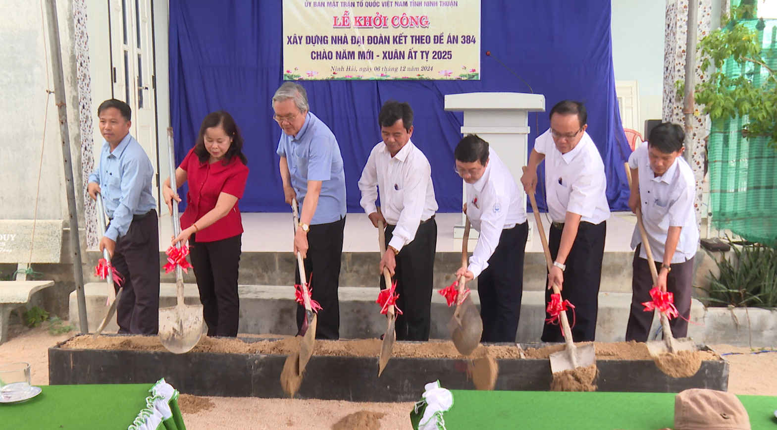 Chiều ngày 06/12/2024, tại thôn Phương Cựu 3, xã Phương Hải, huyện Ninh Hải, Ninh Thuận, Ủy ban Mặt trận Tổ quốc Việt Nam (UBMTTQVN) tỉnh Ninh Thuận tổ chức Lễ khởi công xây dựng 5 căn nhà Đại đoàn kết theo đề án 384 về “Hỗ trợ nhà ở cho hộ nghèo, cận nghèo giai đoạn 2023 – 2025” trên địa bàn huyện Ninh Hải. Đến dự có đồng chí Lê Văn Bình, Ủy viên Thường vụ Tỉnh ủy, Chủ tịch UBMTTQVN tỉnh Ninh Thuận.