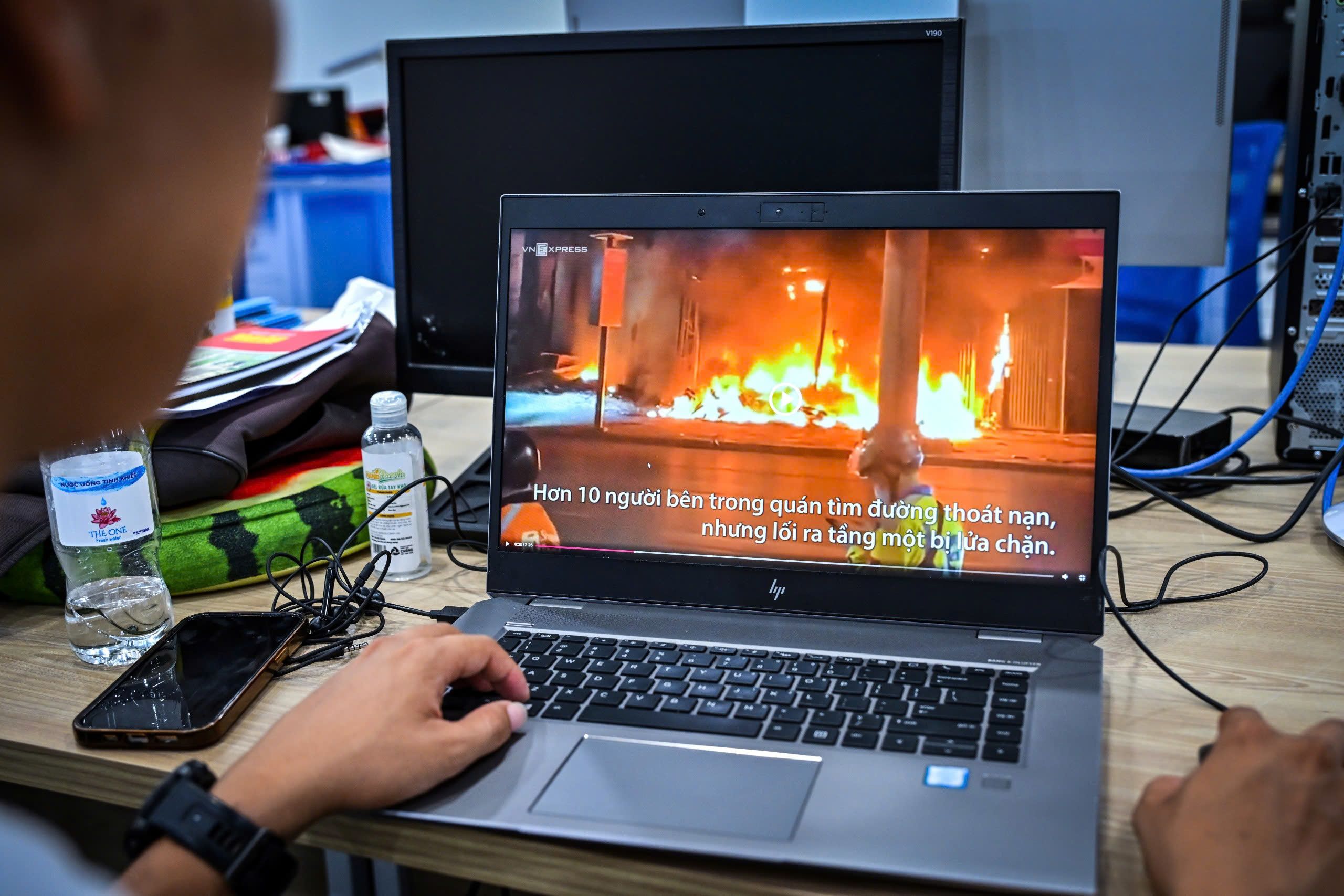Hình ảnh do nhà báo Huy Mạnh quay lại cảnh cảnh sát giải cứu 1 người đàn ông ra khỏi vụ cháy quán hát cho nhau nghe trên đường Phạm Văn Đồng ngày 19/12/2024. Đây là vụ việc nghiêm trọng khiến 11 người tử vong. Video này về sau được Reuters mua tác quyền sử dụng.