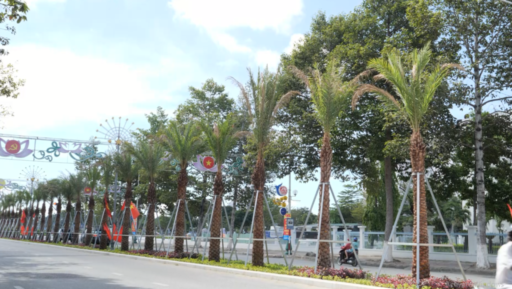 Hệ thống cây xanh trên trục đường 16/4, thành phố Phan Rang-Tháp Chàm, Ninh Thuận được thay thế bằng hàng cây Chà là.