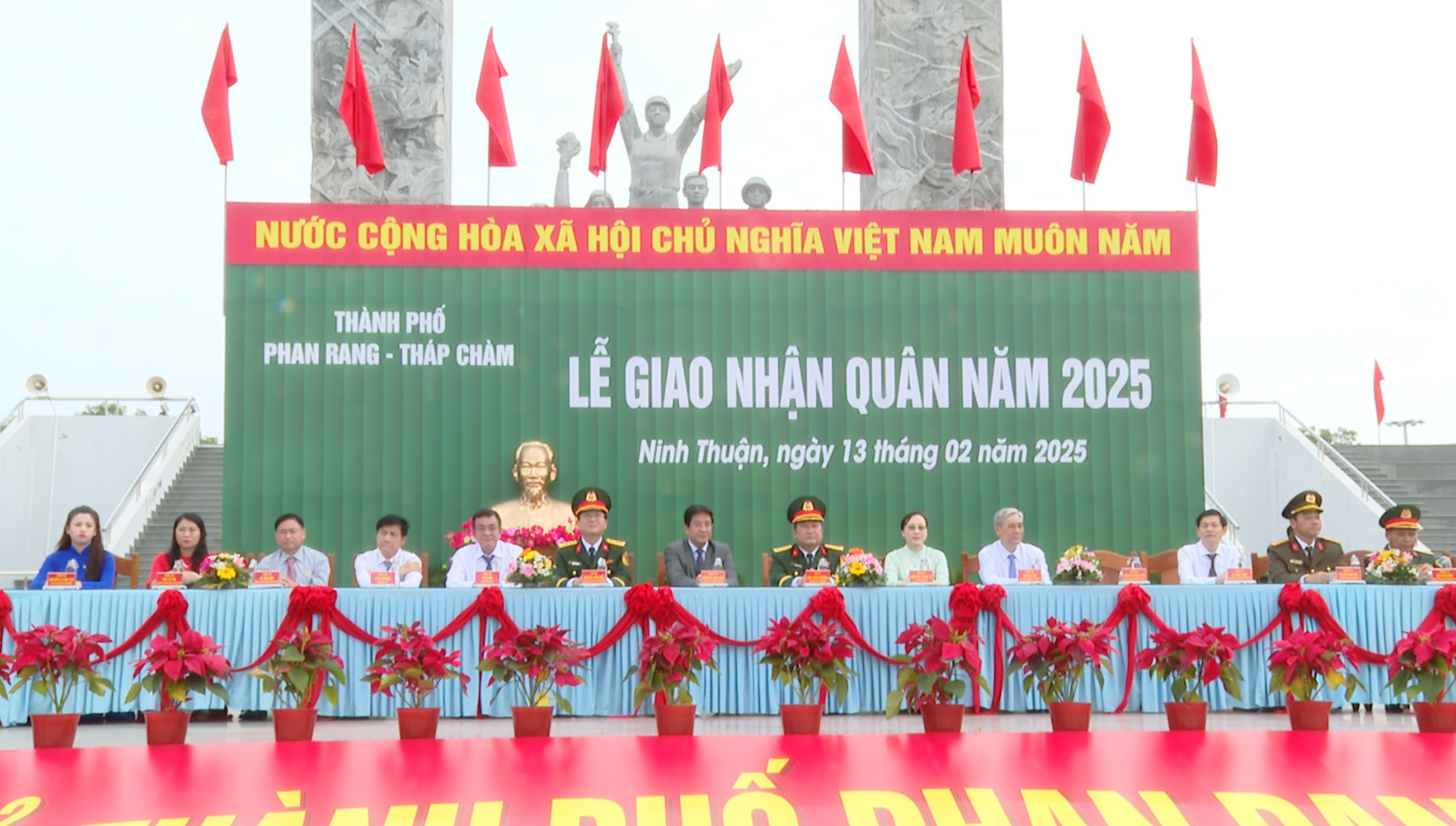 Cùng với các địa phương trong tỉnh, sáng ngày 13/02/2025, thành phố Phan Rang – Tháp Chàm, Ninh Thuận tổ chức Lễ giao, nhận quân năm 2025. Đến dự có Đại tá Lưu Xuân Phương, Phó Tham mưu trưởng Quân khu 5; đồng chí Nguyễn Long Biên, Ủy viên Thường vụ Tỉnh ủy, Phó Chủ tịch UBND tỉnh Ninh Thuận; đồng chí Châu Thị Thanh Hà, Ủy viên Thường vụ Tỉnh ủy, Bí thư Thành ủy Phan Rang – Tháp Chàm và đại diện các đơn vị nhận quân.