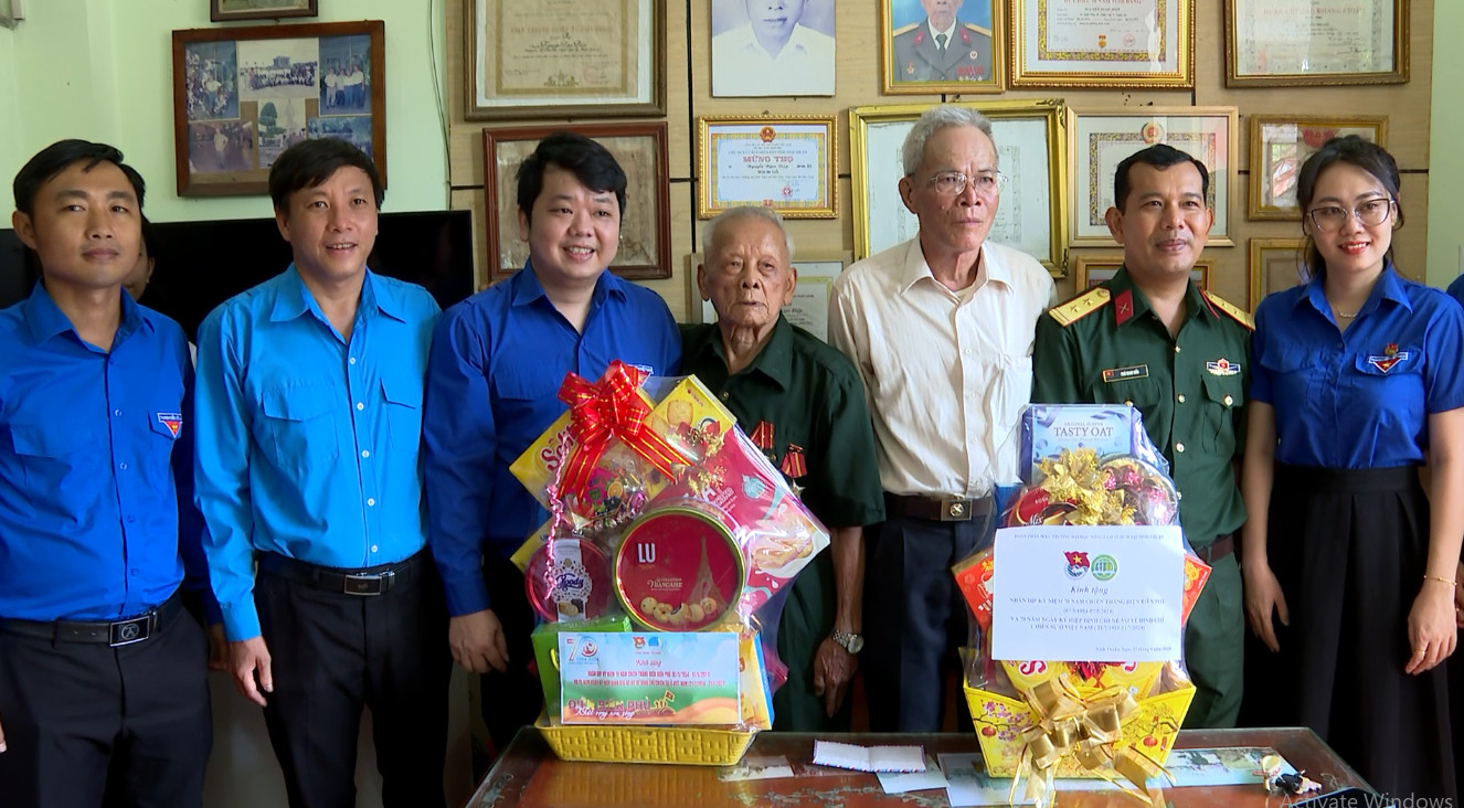 Tỉnh đoàn Ninh Thuận thăm, tặng quà Cựu chiến binh Nguyễn Ngọc Điệp phường Kinh Dinh, thành phố Phan Rang – Tháp Chàm, Ninh Thuận, người trực tiếp tham gia phục vụ chiến trường Điện Biên Phủ.