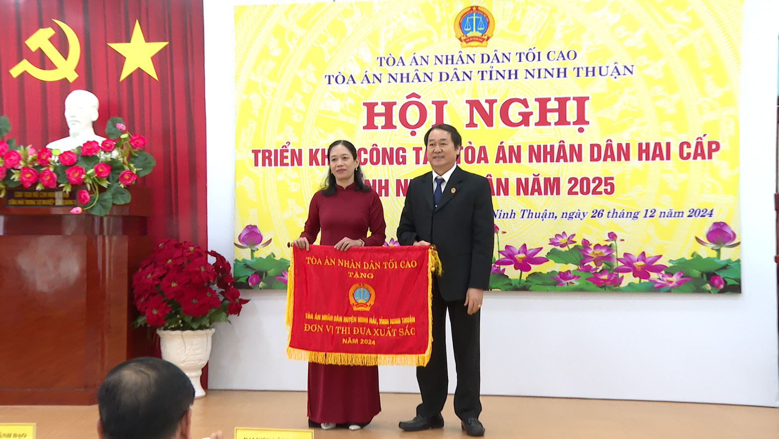 Chánh án Tòa án nhân dân tỉnh Ninh Thuận đã trao Cờ thi đua xuất sắc năm 2024 của Tòa án nhân dân Tối cao cho Tòa án nhân dân huyện Ninh Hải.