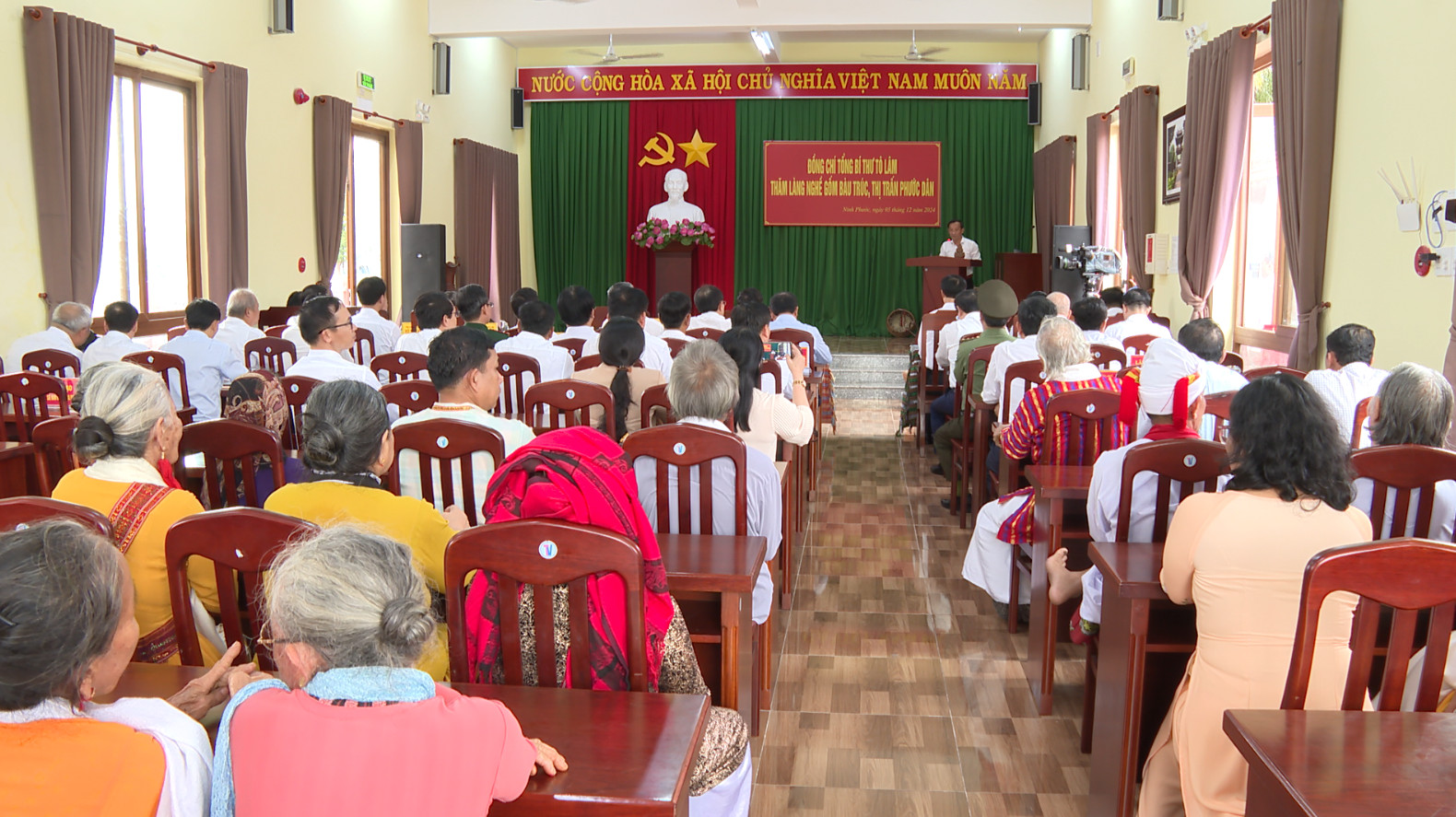 Tại đây, Tổng Bí thư Tô Lâm và Đoàn công tác đã nghe lãnh đạo huyện Ninh Phước giới thiệu về quá trình phát triển của làng nghề gốm Bàu Trúc, thị trấn Phước Dân. Làng nghề gốm Bàu Trúc là một trong những làng nghề gốm cổ nhất Đông Nam Á. Làng nghề gốm Bàu Trúc nổi tiếng với những sản phẩm mang đậm bản sắc văn hóa Chăm; gốm được chế tác hoàn toàn bằng thủ công “Nắn bằng tay, không bàn xoay” và được nung lộ thiên hoàn toàn; toàn bộ quy trình làm gốm toát lên một giá trị nghệ thuật đặc trưng, giữ được sự tinh túy và vẻ đẹp hoang sơ của gốm, tạo nên giá trị độc đáo của gốm Chăm. Tháng 12 năm 2022, Nghệ thuật làm gốm của người Chăm được UNESCO ghi danh vào Danh mục Di sản văn hóa phi vật thể cần bảo vệ khẩn cấp.