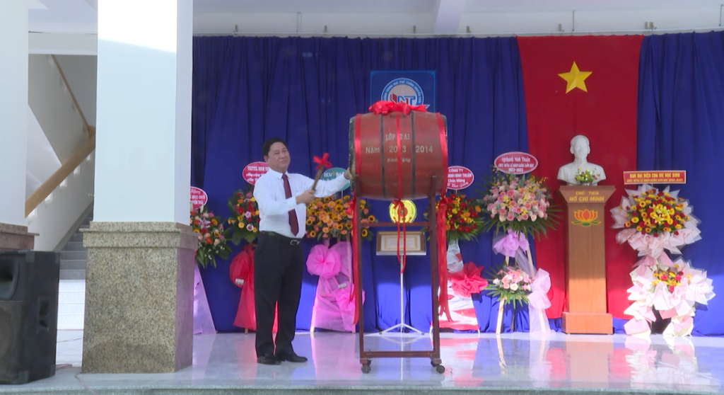 Tại buổi lễ, đồng chí Trần Quốc Nam, Chủ tịch UBND tỉnh Ninh Thuận đã đánh hồi trống khai giảng năm học mới và tặng hoa cho Ban giám hiệu trường THPT Nguyễn Trãi.
